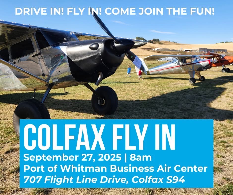 Save the date for the Colfax Fly In! Come on out to the Port of Whitman Business Air Center for a pancake breakfast, airplane rides, and much more! Join the Experimental Aircraft Association on Saturday, September 27. Drive in! Fly in! Come join the fun!